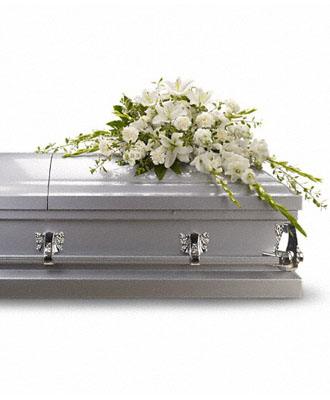Our Bountiful Memories Casket Spray is a stunning bouquet that can help you honor and remember the departed. Featuring a collection of captivating flowers, including carnations, white oriental lilies, and gladioli, this crescent-shaped casket spray is a beautiful tribute.