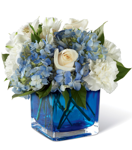 The Peace and Light Hanukkah Bouquet is a charming and stylish bouquet composed of carefully selected flower varieties that exude light and warmth, helping you celebrate this special festive season with your loved ones. The bouquet features beautiful blue hydrangea, white roses, Peruvian lilies, and carnations arranged beautifully in a cubed glass vase, topped with lush greens. The bouquet enables you to wish your loved ones all the peace and light in their lives without having to express it verbally.